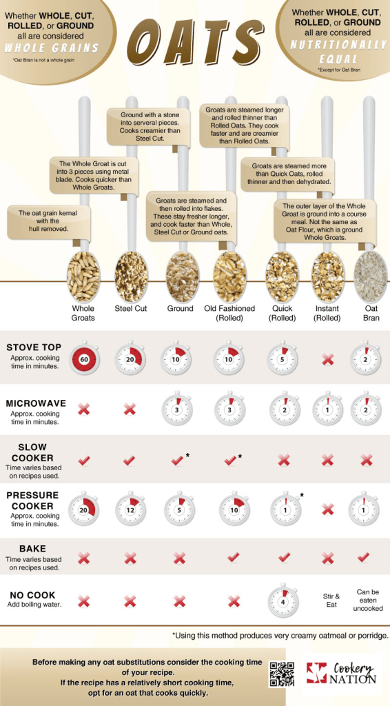 Keep in mind that all brands are different and may process their oats more or less. This graphic is just a general guideline.